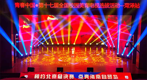2021年7月15日,在菏澤市市民文化中心舉辦的第十七屆全國校園美育電視選拔活動菏澤站選拔賽成功舉辦,由我公司提供的高清高亮高刷新LED電子屏、大歌光束燈、LED帕燈等周邊舞美設備,活動得到了客戶高度的贊賞!
