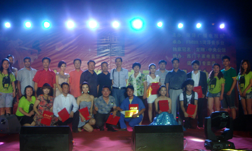 我公司慶典演藝部全體人員不顧炎熱高溫,將舞臺(tái)、桁架、燈光架、音響、各種燈光等舞美設(shè)備全部安裝調(diào)試到位。晚7點(diǎn)30分,電視臺(tái)主持人巨聲和隋欣閃亮登場(chǎng),分別邀請(qǐng)菏澤龍翔房地產(chǎn)開發(fā)有限公司常務(wù)副總方明柱和菏澤市廣播電視臺(tái)紀(jì)委書記徐明軍進(jìn)行了熱情洋溢的致辭。晚8時(shí),隨著十位選手的精彩亮相,比賽大幕徐徐拉開?;顒?dòng)現(xiàn)場(chǎng)LED帕燈、光束電腦搖頭燈、P64聚光燈以及2500W追光燈與中央公館金玉其外、毓秀其中的璀璨夜景相得益彰、交相輝映,給大賽現(xiàn)場(chǎng)帶來了前所未有的視聽體驗(yàn)。