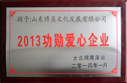 1月18日上午,大眾網(wǎng)菏澤2013網(wǎng)友年會(huì)暨影響力頒獎(jiǎng)典禮隆重舉行。我公司被授予“2013功勛愛(ài)心企業(yè)稱號(hào)”。